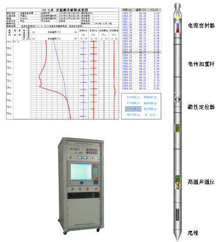 曲線打。喊褱y井信息及曲線輸出到打印機,產(chǎn)生正式井溫測試曲線。