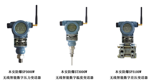 根據(jù)用戶現(xiàn)場工礦和需要測量的參數(shù),配備無線智能數(shù)字壓力變送器、無線智能數(shù)字溫度變送器、無線智能差壓變送器等。