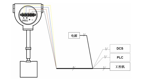 RS485總線接口輸出、CAN總線接口輸出的流量變送器與外部電纜連接,可通過電纜壓線引出、防水插頭連接或根據(jù)用戶需要配置。電纜壓線引出導線定義:
