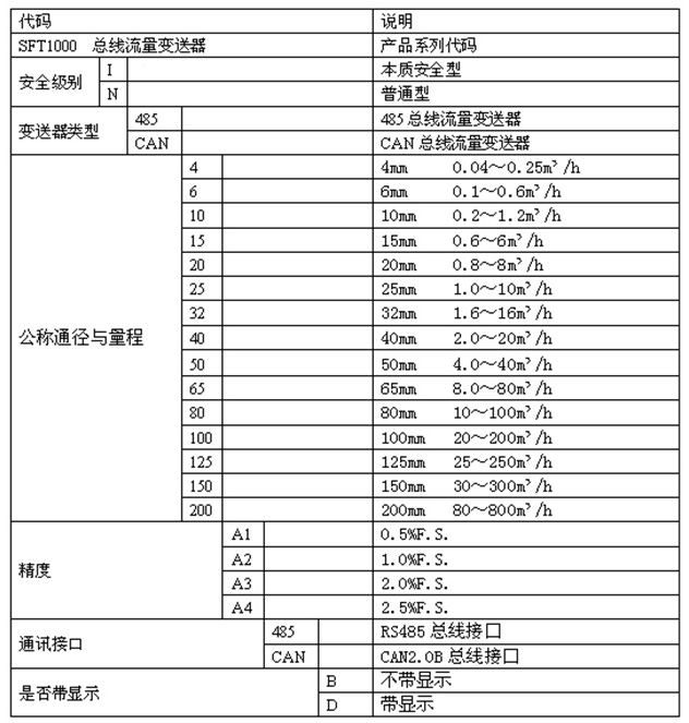 根據(jù)用戶的不同要求, SFT1000 總線流量變送器可提供485總線接口輸出、CAN總線接口輸出的流量變送器。總線流量變送器可以在一條現(xiàn)場總線上多支并聯(lián)使用,省去了像4~20mA模擬變送器每一支必須單獨連線的眾多麻煩,特別適用于與二次顯示儀、PLC、DCS等計算機控制系統(tǒng)配合使用。